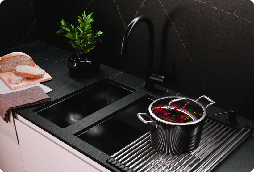Кухонные мойки с PVD покрытием практичны в уходе и удобны в эксплуатации: