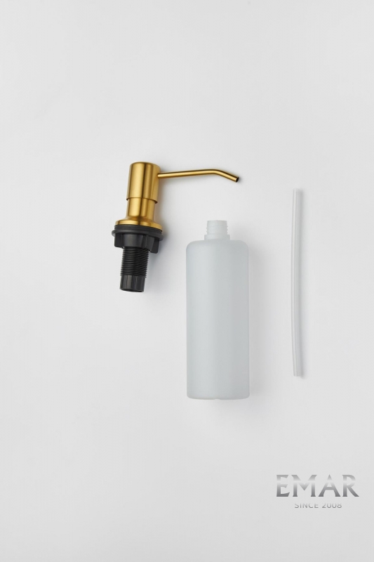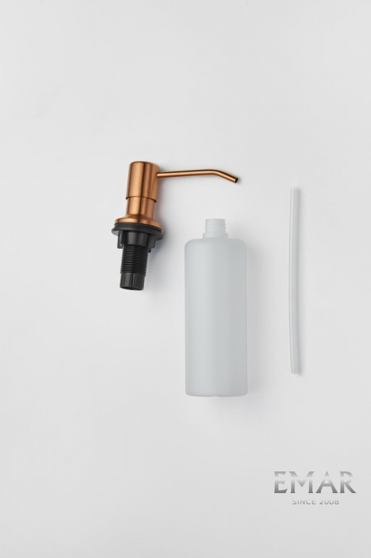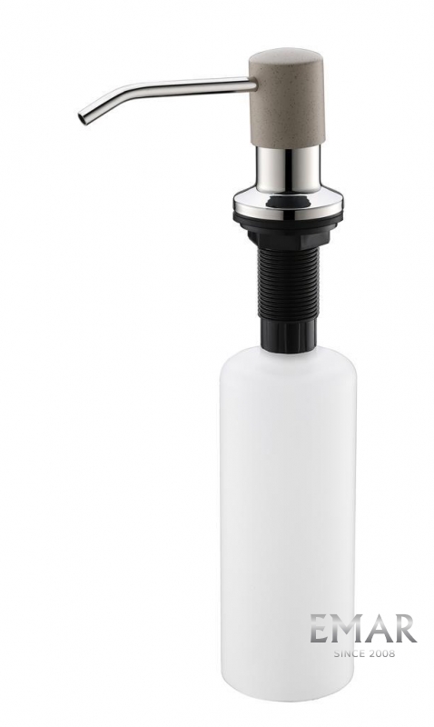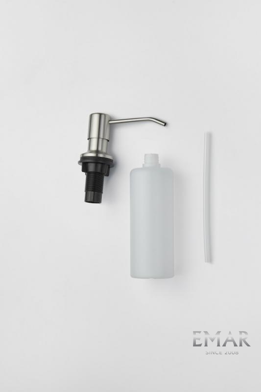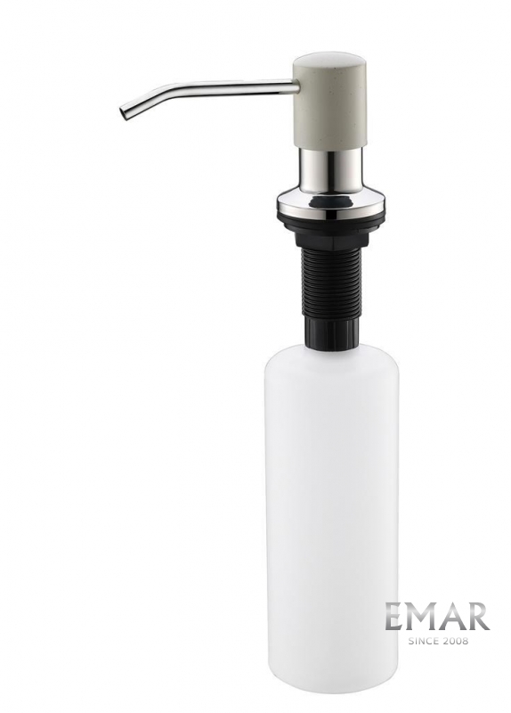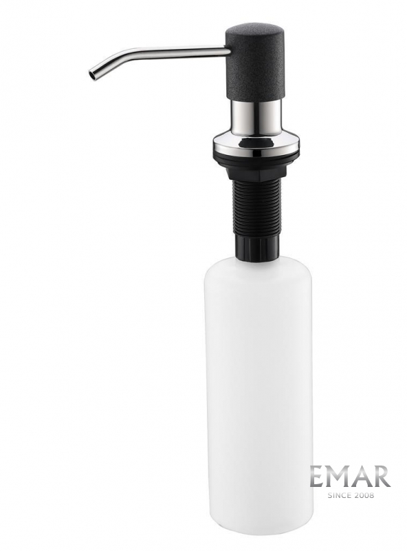 Функциональный и простой в использовании аксессуар для Вашей кухни. Подходит для использования жидкого мыла или моющего средства. Дозатор EMAR ЕД-401 легко устанавливается на кухонную мойку или в столешницу. Вместительная емкость легко заполняется средством сверху. Установочный вырез, мм: d=30.