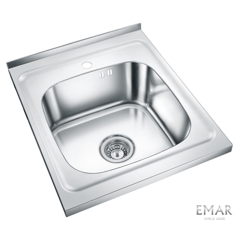 Классическая накладная мойка из нержавеющей стали AISI 201. Поверхность указана в вариантах товара. Данная модель при монтаже накладывается на отдельностоящую тумбу. На дне установлена резиновая шумопоглощающая накладка.