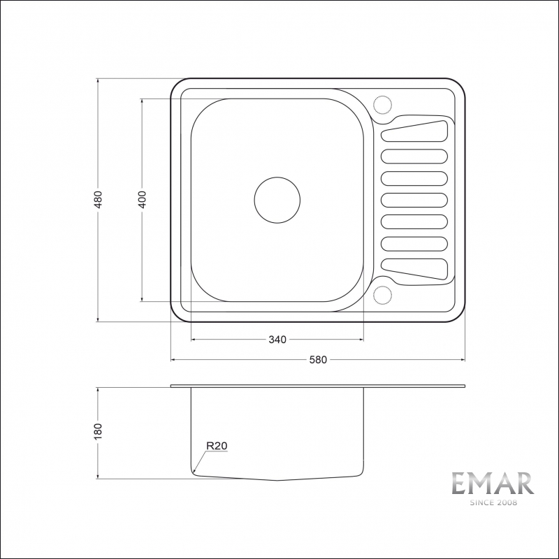 Мойка для кухни с крылом и чашей EMAR 5848