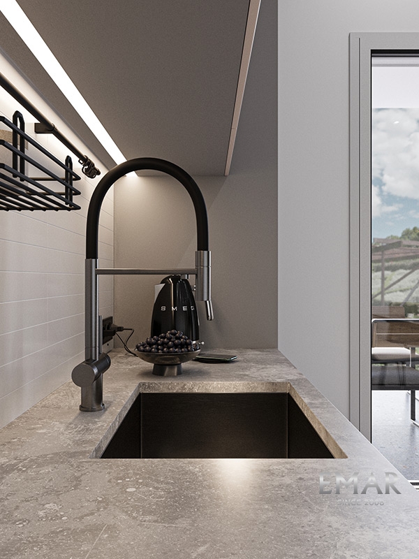 Однорычажное управление поможет легко регулировать температуру и напор подачи воды. Гибкий излив увеличивает площадь и эффективность использования смесителя. Соответствует стандартам DIN DVGW.