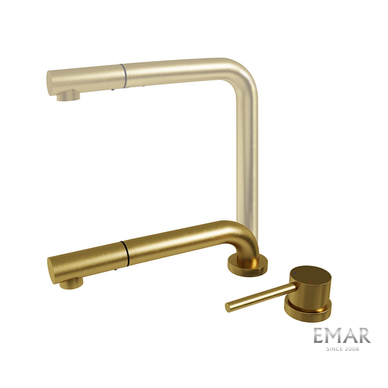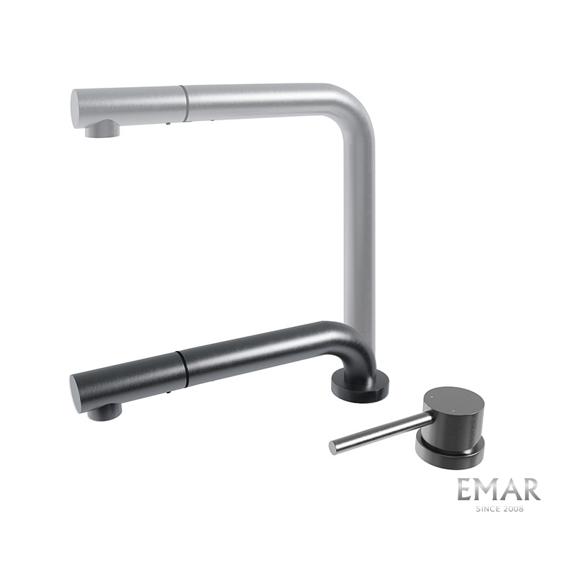 Кухонный смеситель с телескопическим и выдвижным изливом. Телескопический излив позволяет регулировать высоту смесителя и спроектирован для монтажа смесителя под окно и для «скрытых» кухонных моек.
