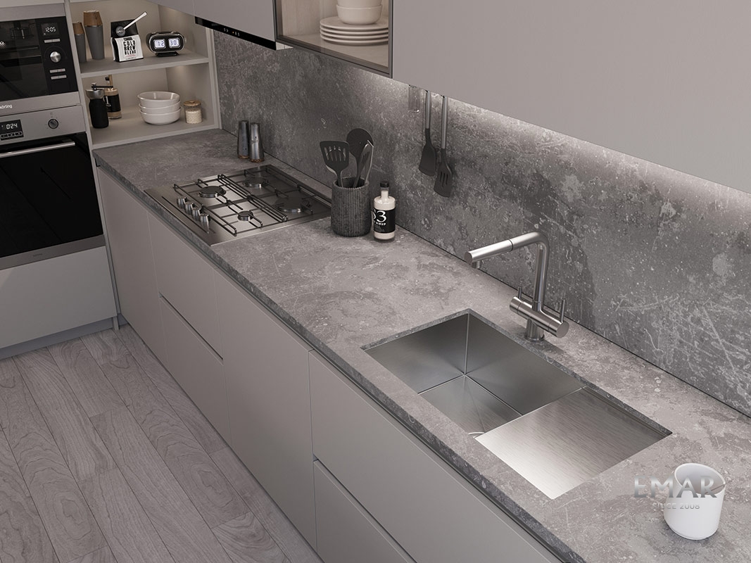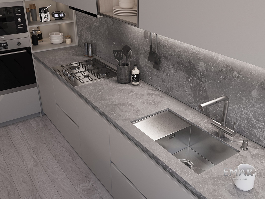 Мойка из нержавеющей стали AISI. AISI 304 содержит 18% хрома и 9% никеля, что обеспечивает максимальную устойчивость к коррозии. PVD покрытие (метод покраски путем напыления в вакууме) встраивается в кристаллическую решетку металла, образуя прочный защитный слой. Легко удаляется жир, налет и разводы от воды.
