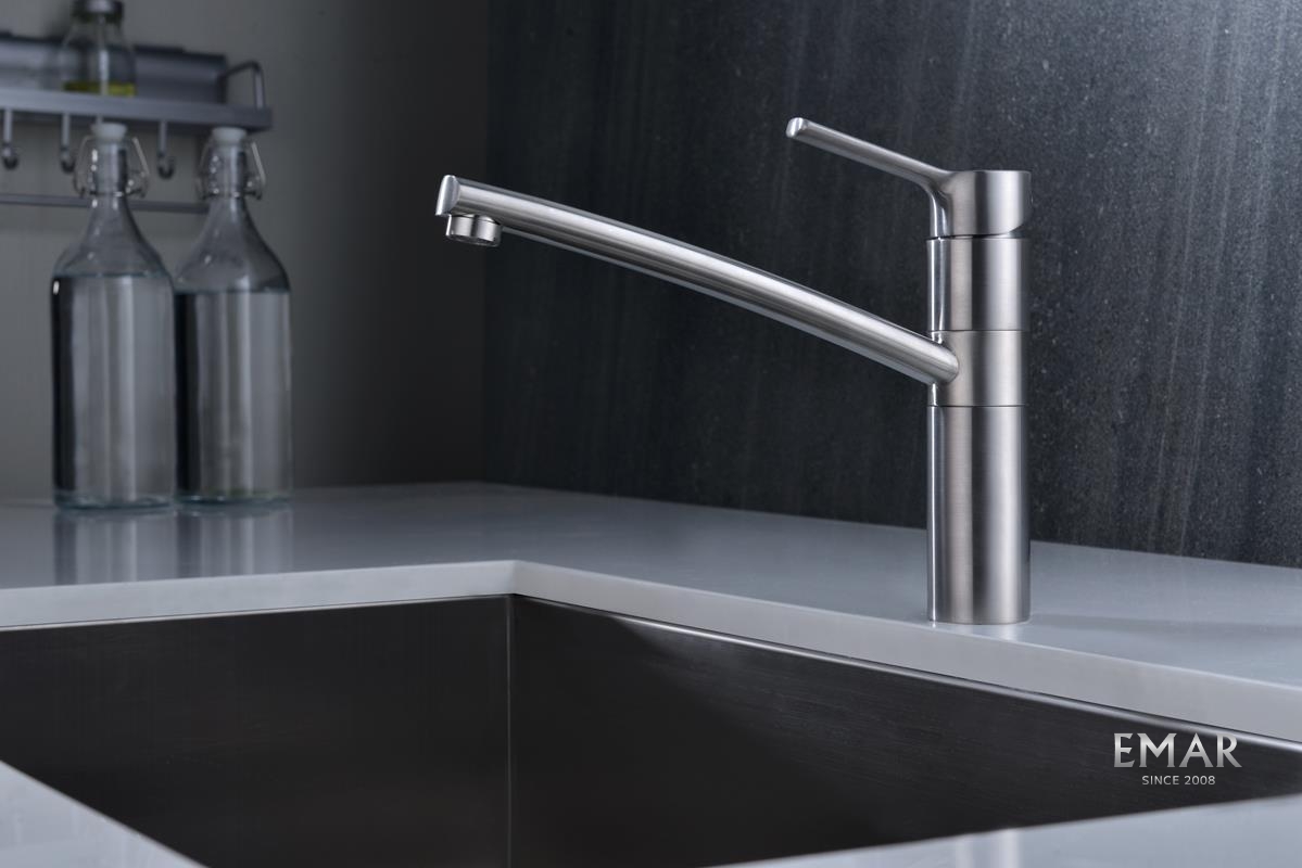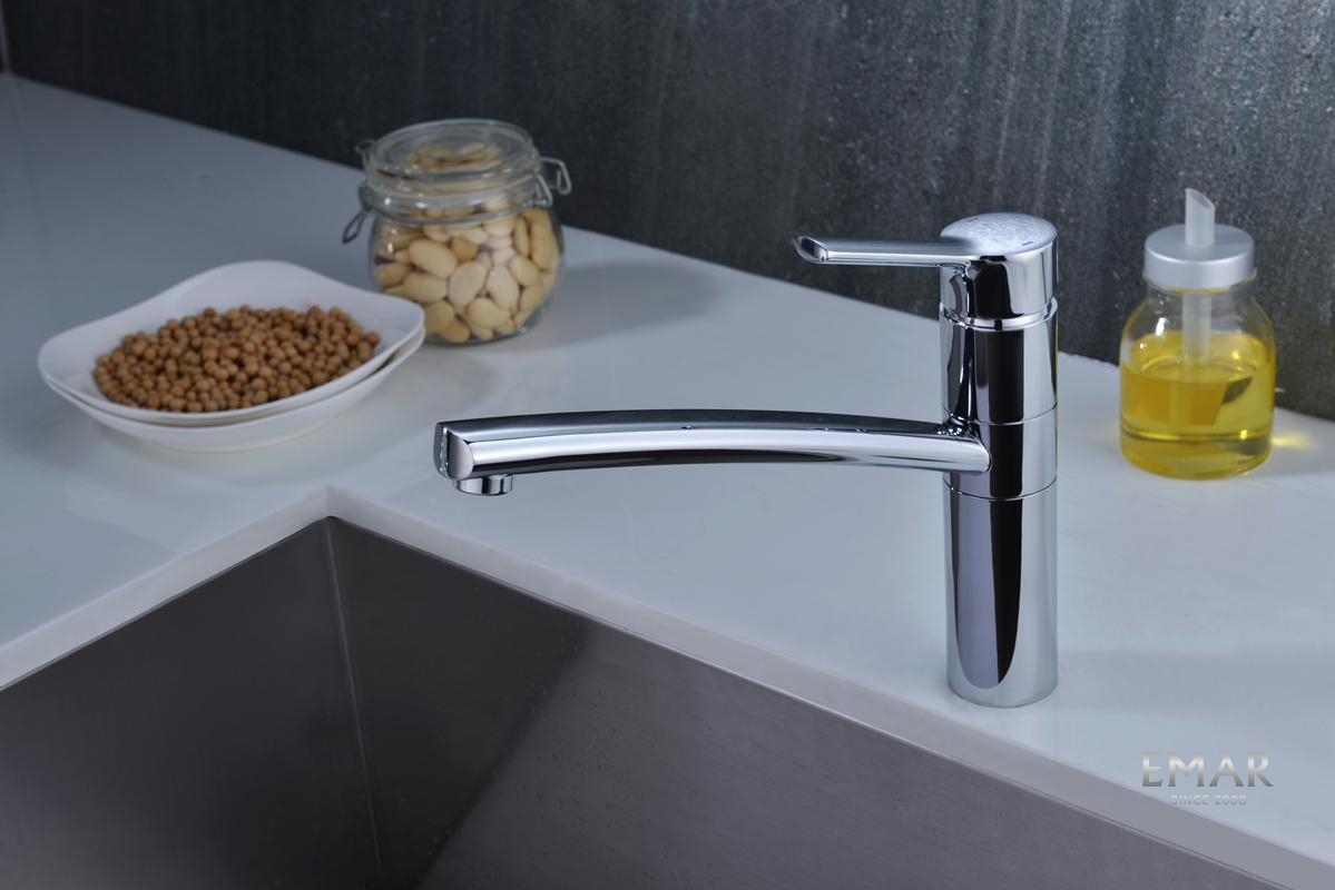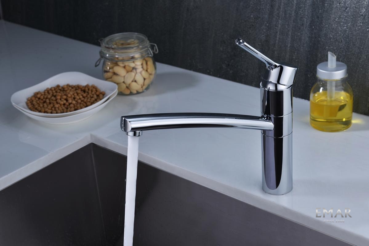 Кухонный смеситель классической формы. Однорычажное управление поможет легко регулировать температуру и напор подачи воды. Соответствует стандартам DIN DVGW.