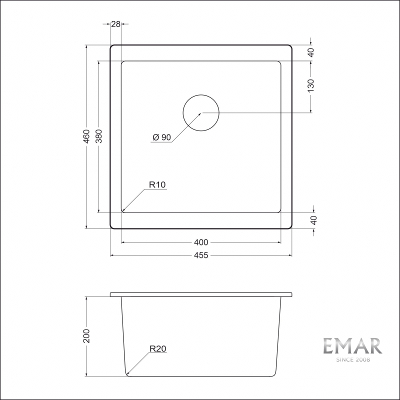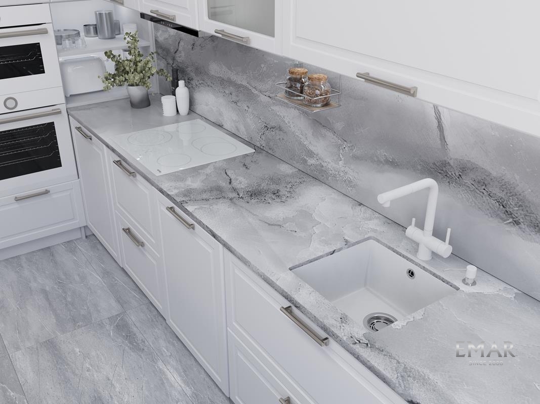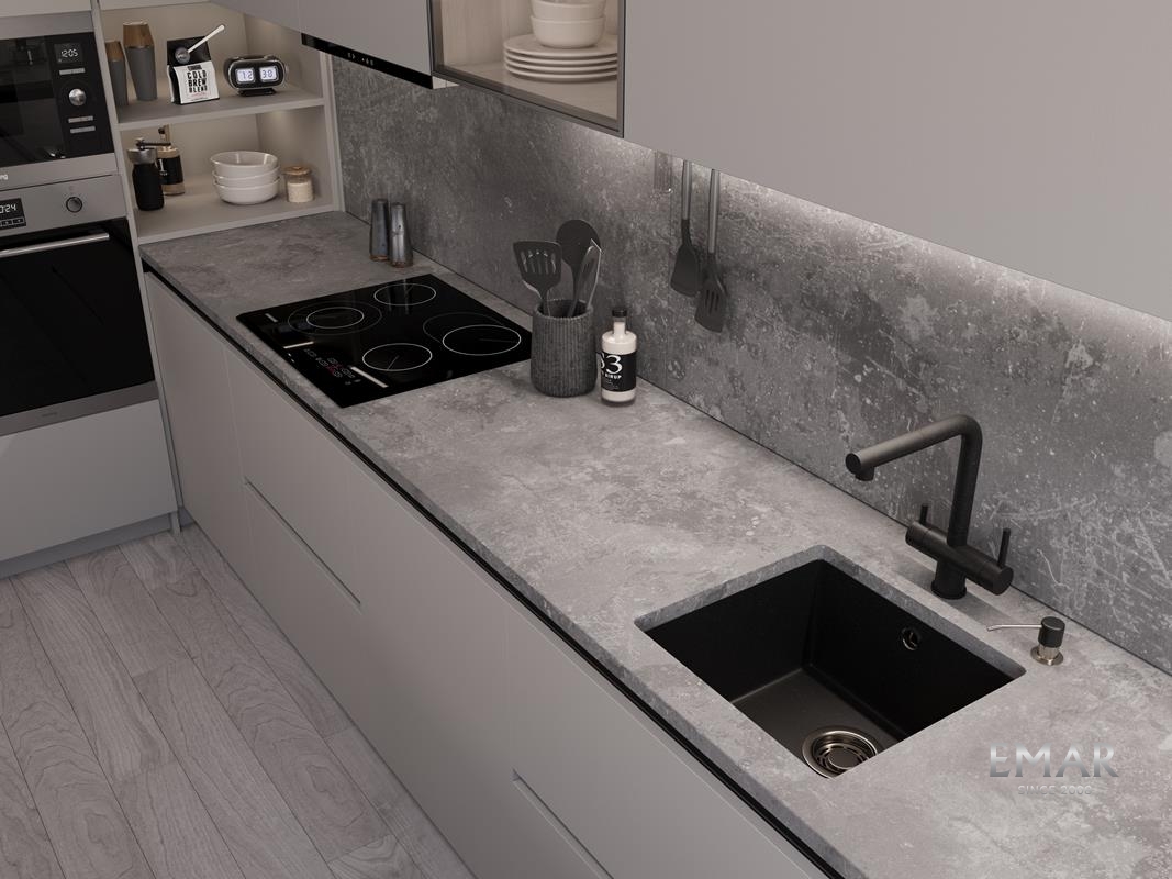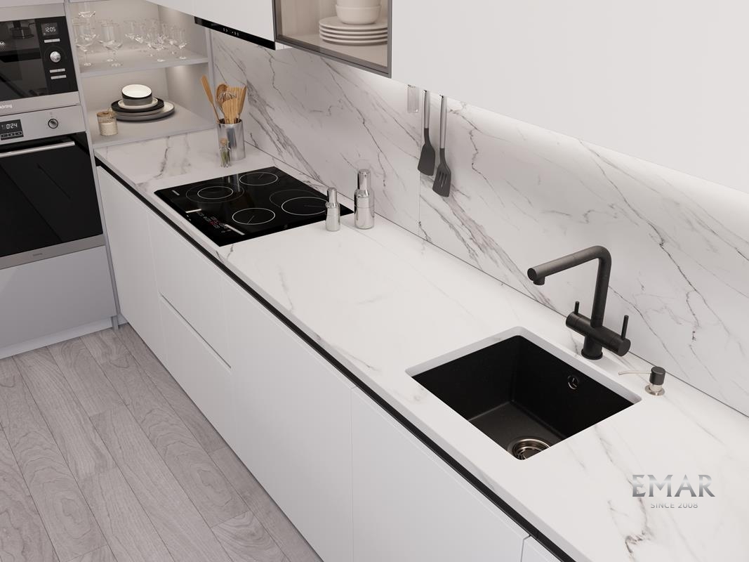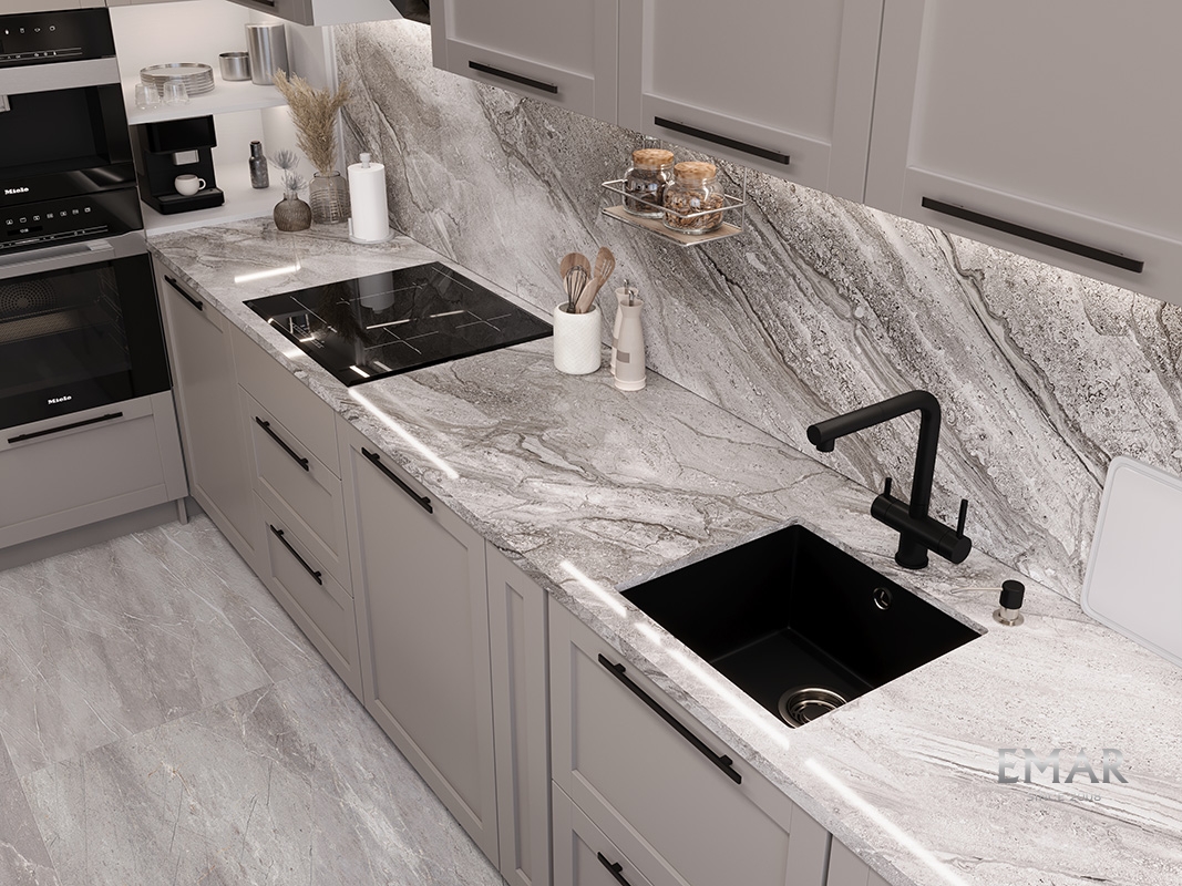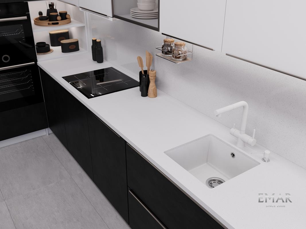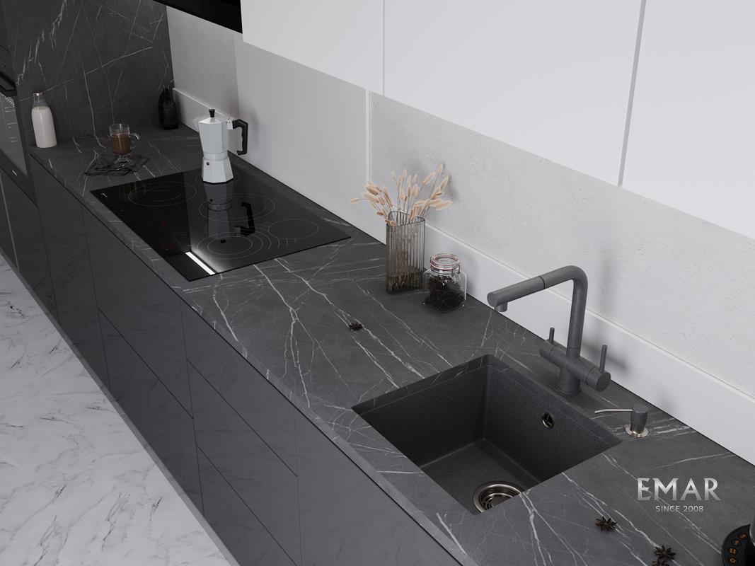 Кухонные мойки EMAR QUARTZ на 78% состоят из измельченного кварца различных фракций и 22% связующих полиэфирных смол модифицированных метилметакрилатом.