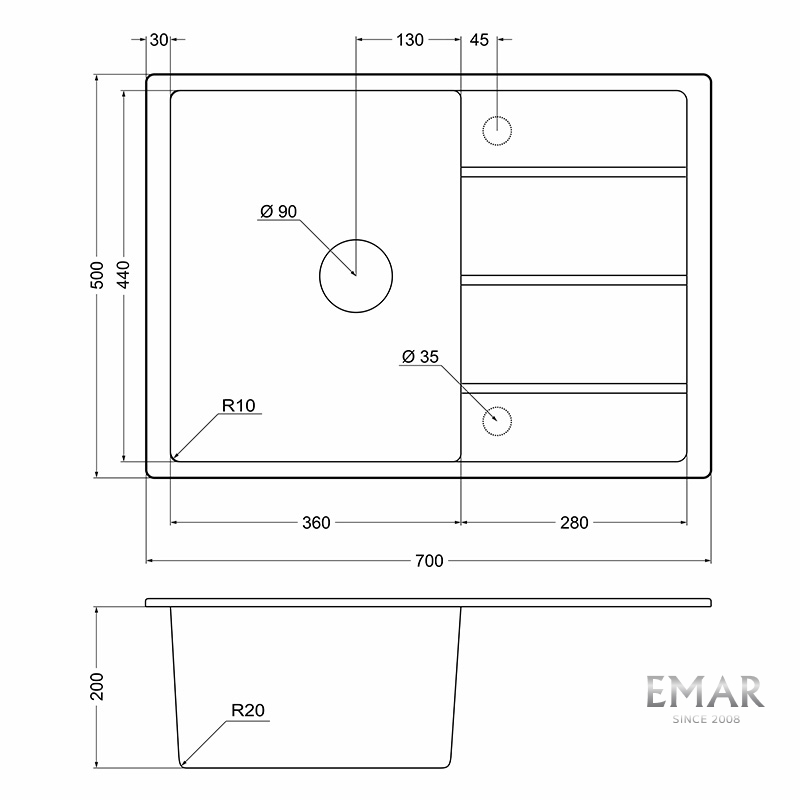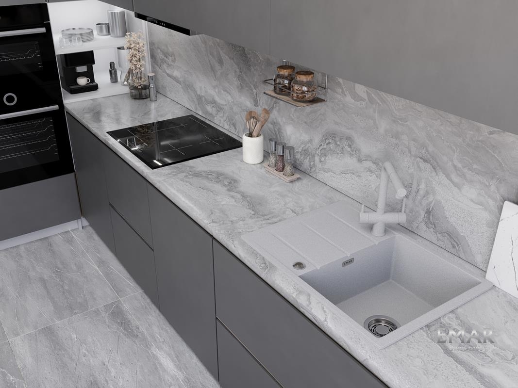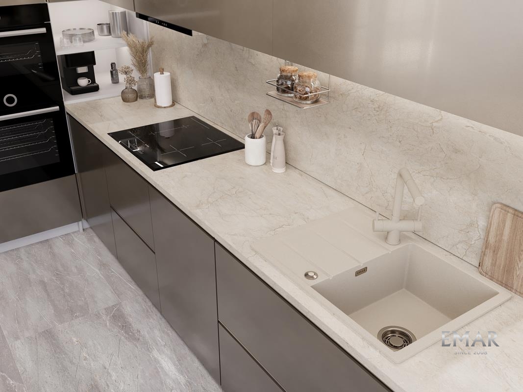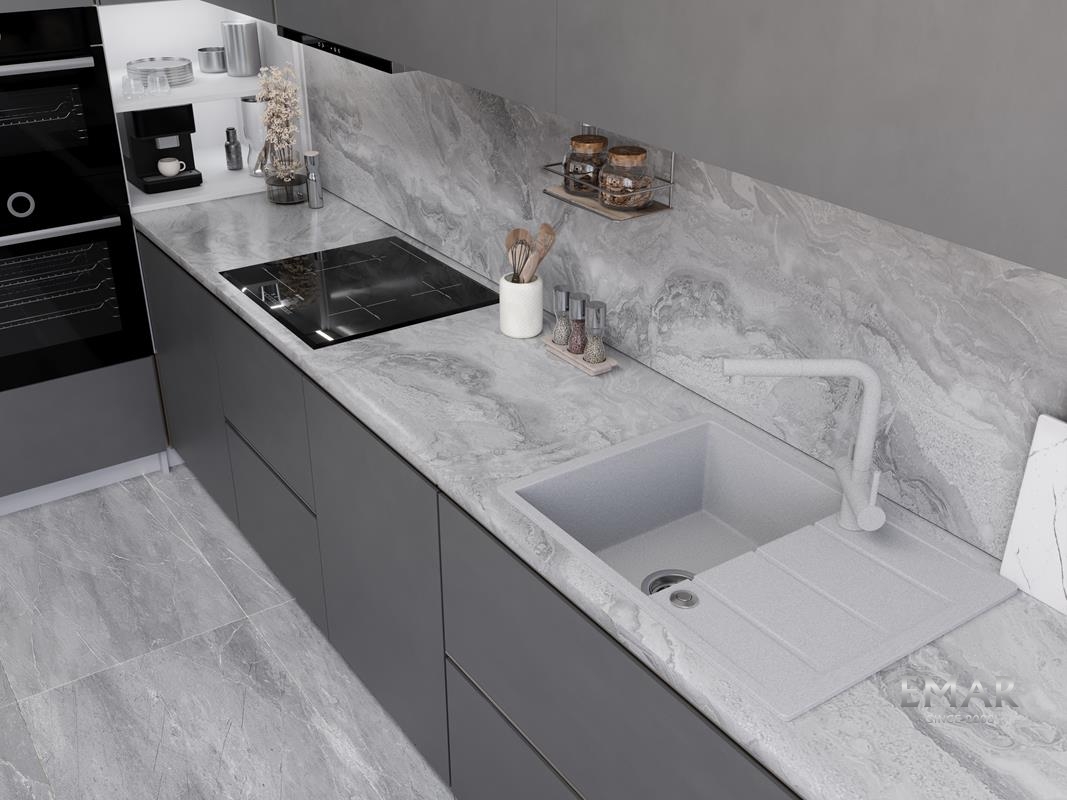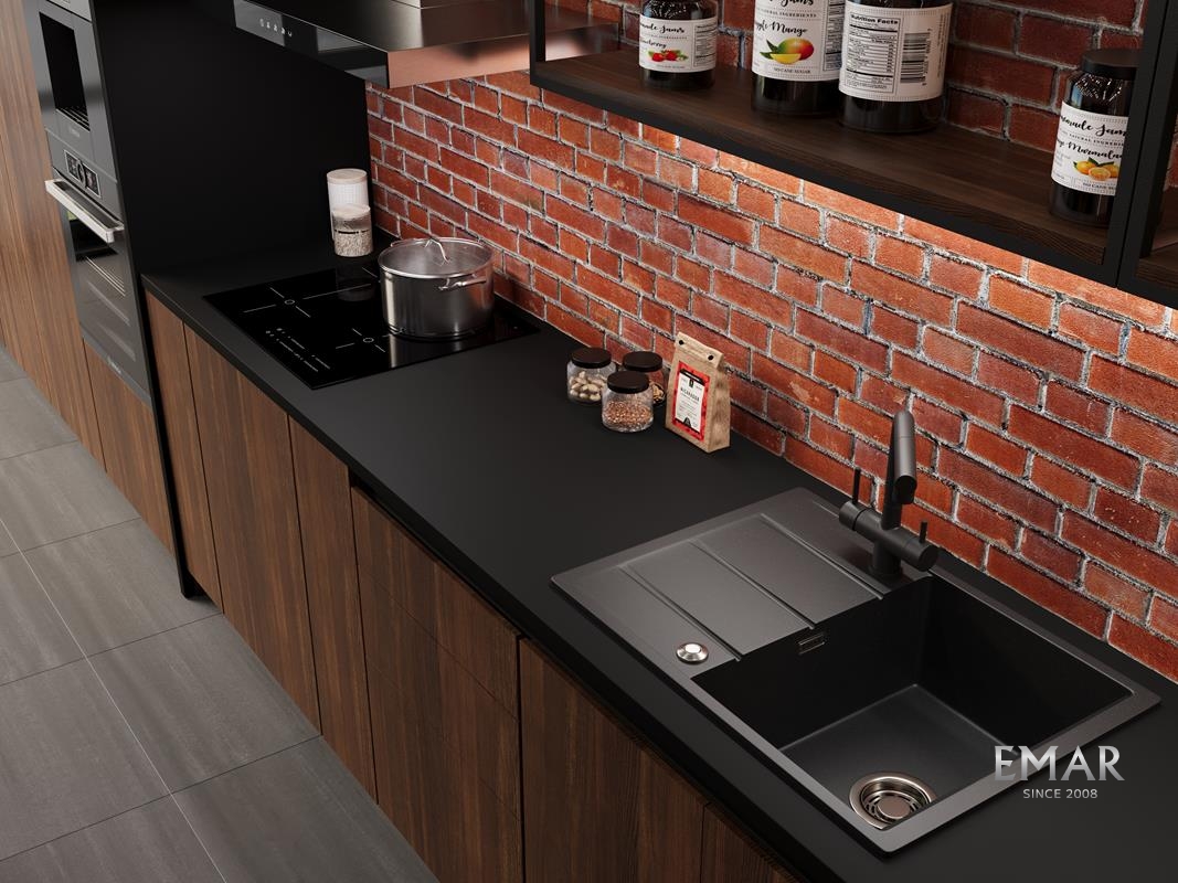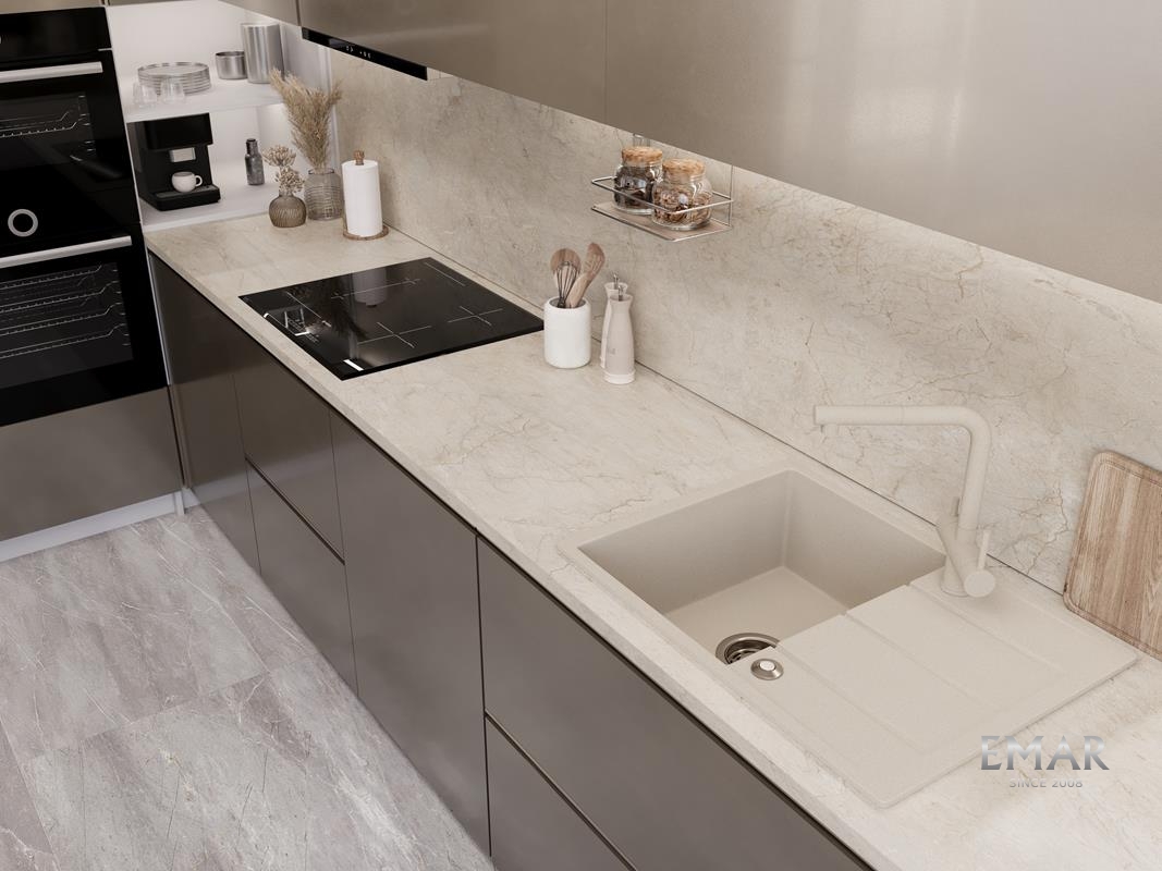 Кухонные мойки EMAR QUARTZ на 78% состоят из измельченного кварца различных фракций и 22% связующих полиэфирных смол модифицированных метилметакрилатом.
