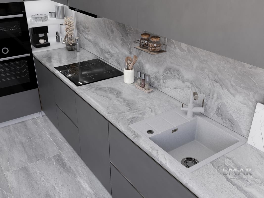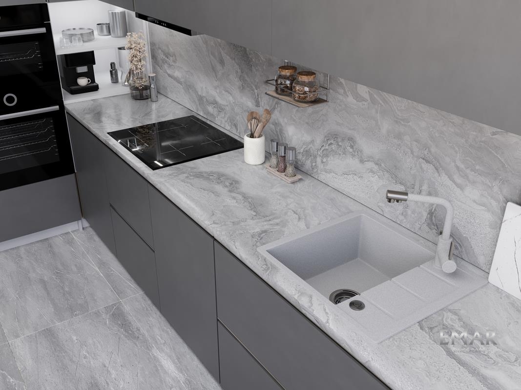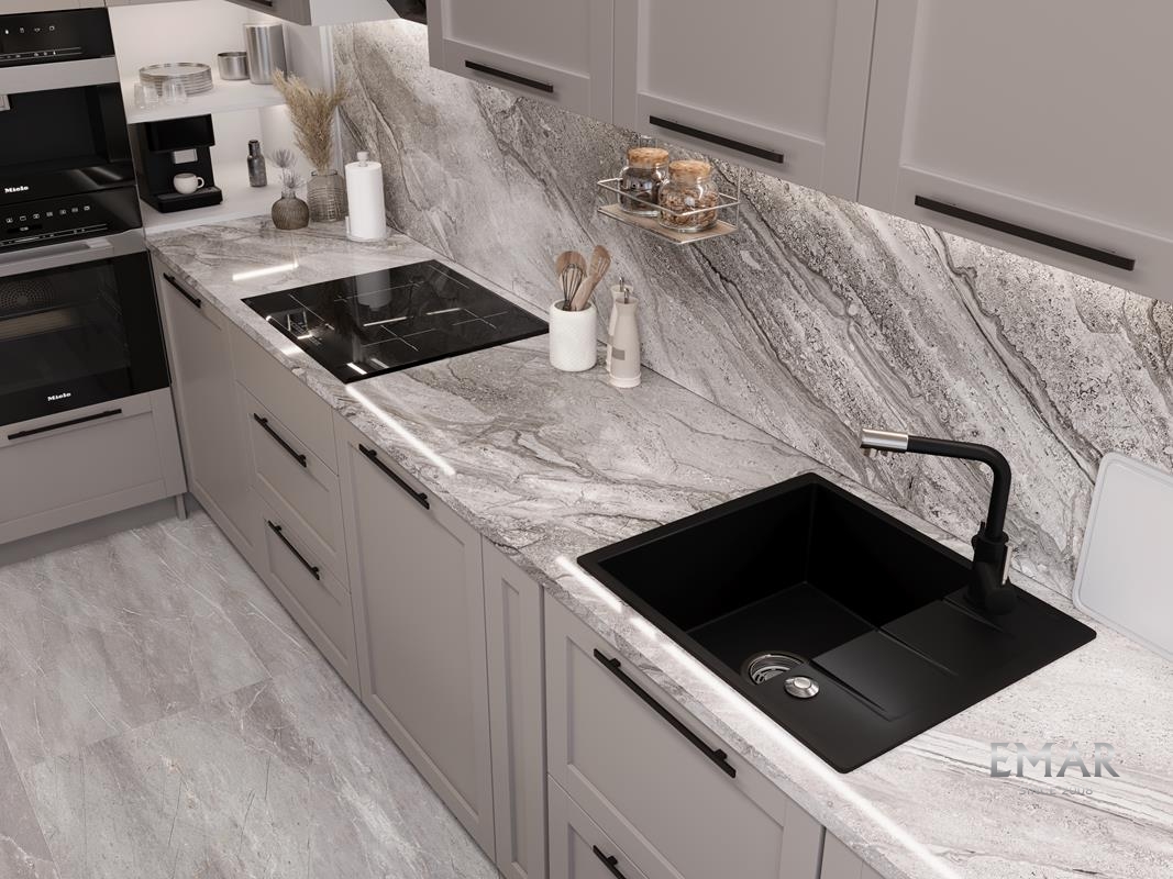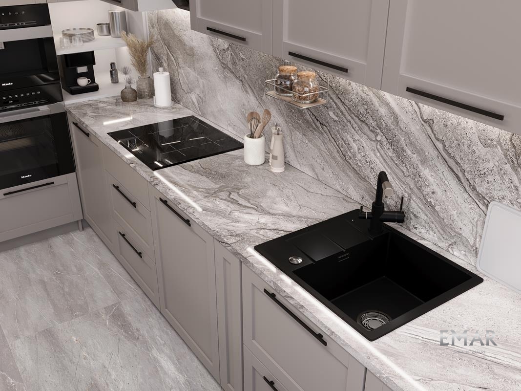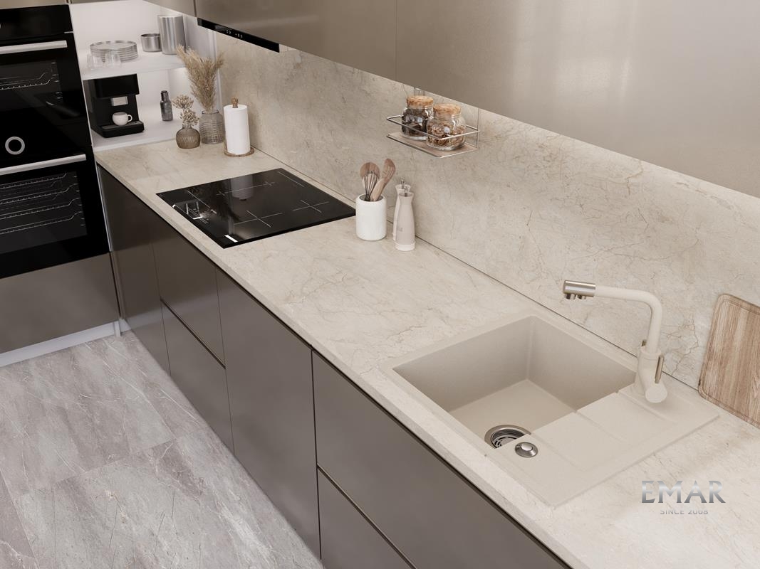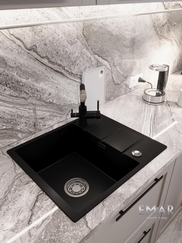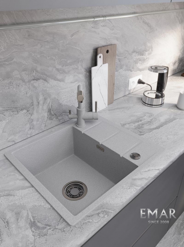 Кухонные мойки EMAR QUARTZ на 78% состоят из измельченного кварца различных фракций и 22% связующих полиэфирных смол модифицированных метилметакрилатом.