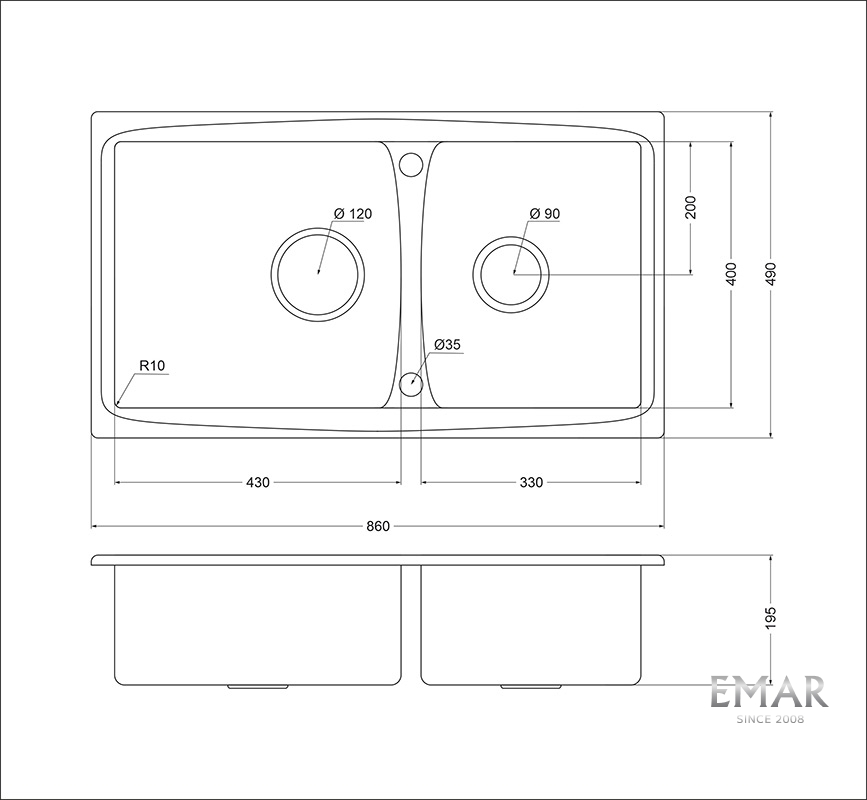• Размеры чаш: 430 x 400 х 195 мм и 330 x 400 х 195 мм