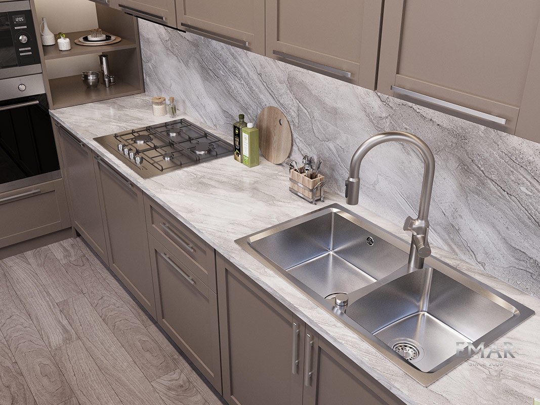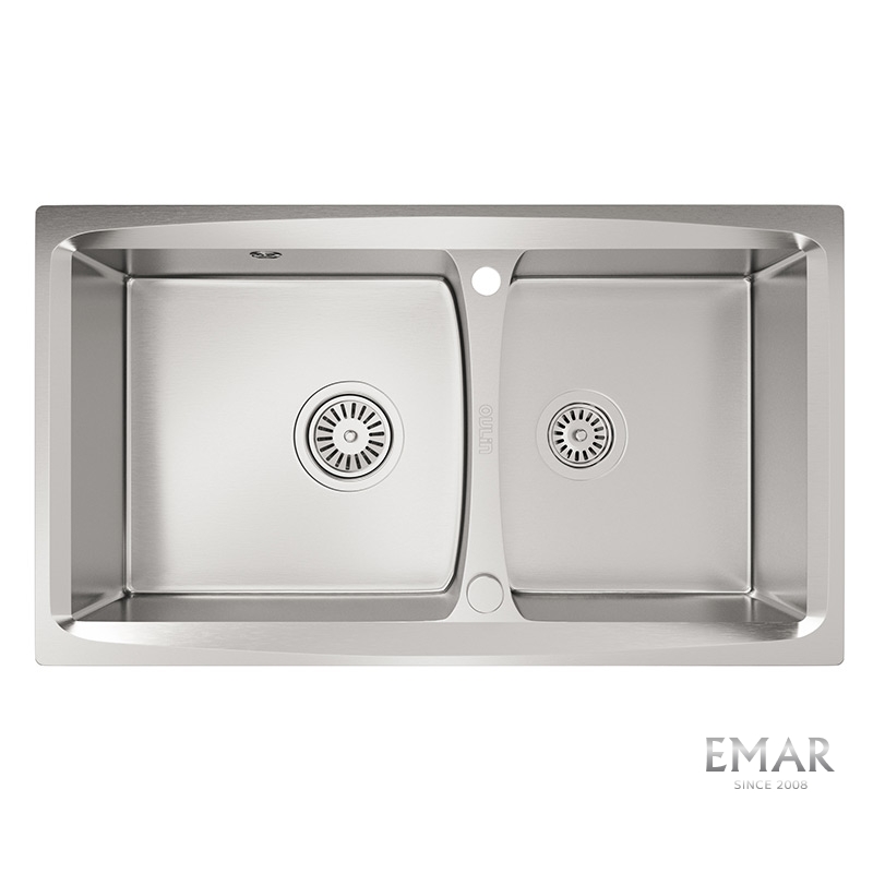 Мойка из нержавеющей стали AISI. AISI 304 содержит 18% хрома и 9% никеля, что обеспечивает максимальную устойчивость к коррозии. Шлифованная поверхность моек OULIN достигается по технологии Satin Finish Brushing. С обратной стороны, на дне чаши, находятся резиновые шумопоглащающие накладки и антиконденсатное покрытие, что делает мойку бесшумной.