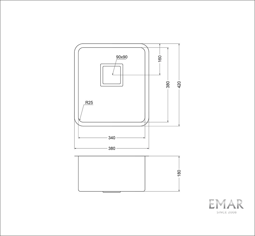 • Размеры мойки: 380 x 420 мм
