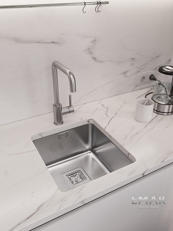 Мойка из нержавеющей стали AISI. AISI 304 содержит 18% хрома и 9% никеля, что обеспечивает максимальную устойчивость к коррозии. Шлифованная поверхность моек OULIN достигается по технологии Satin Finish Brushing. С обратной стороны, на дне чаши, находятся резиновые шумопоглащающие накладки и антиконденсатное покрытие, что делает мойку бесшумной.