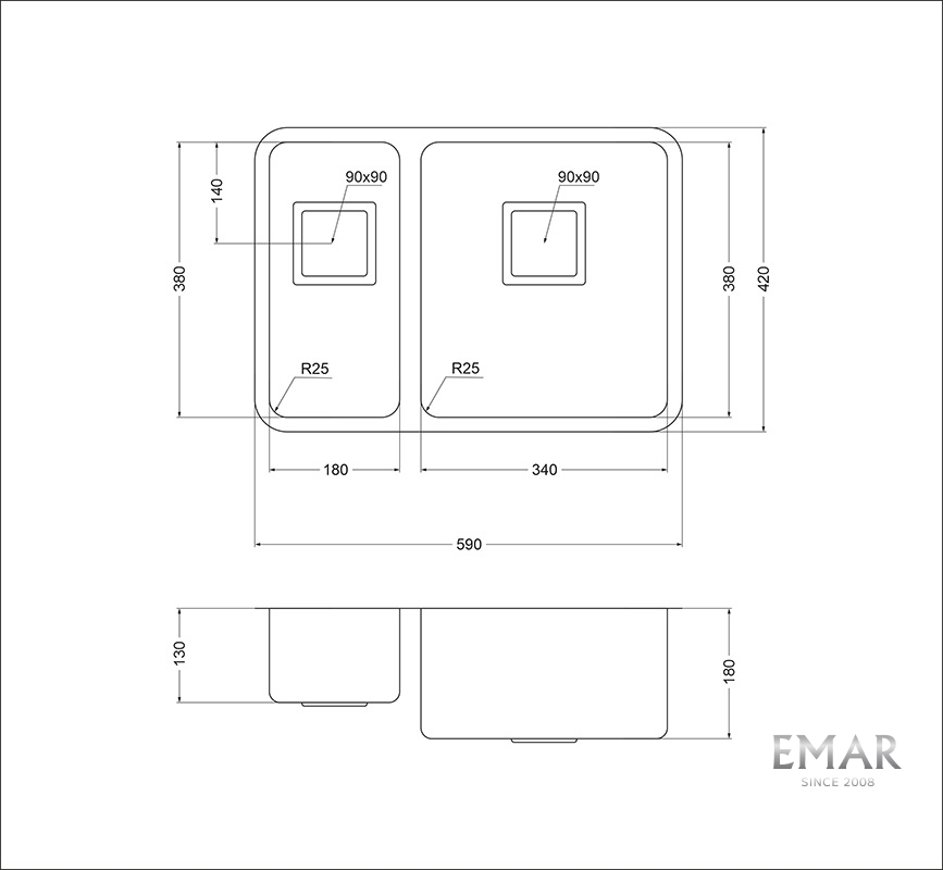 • Размеры мойки: 590 x 420 мм