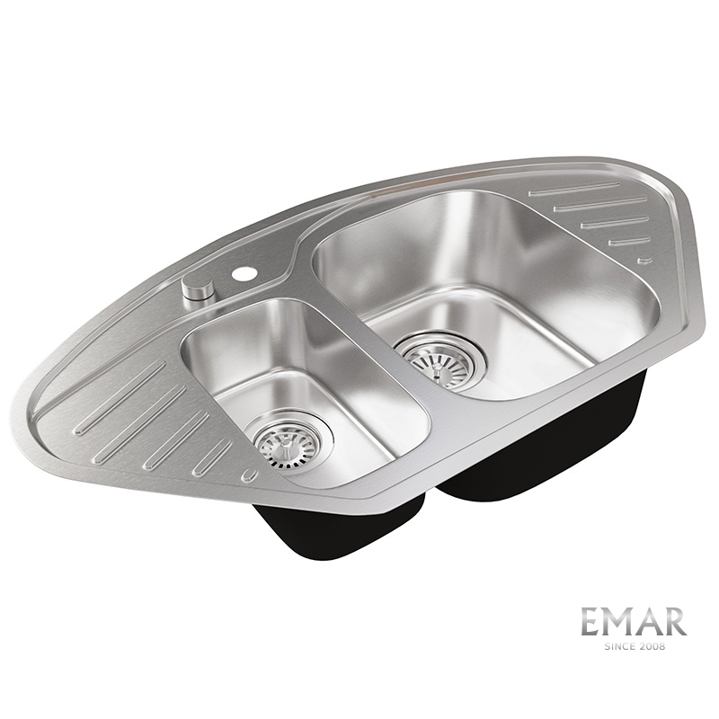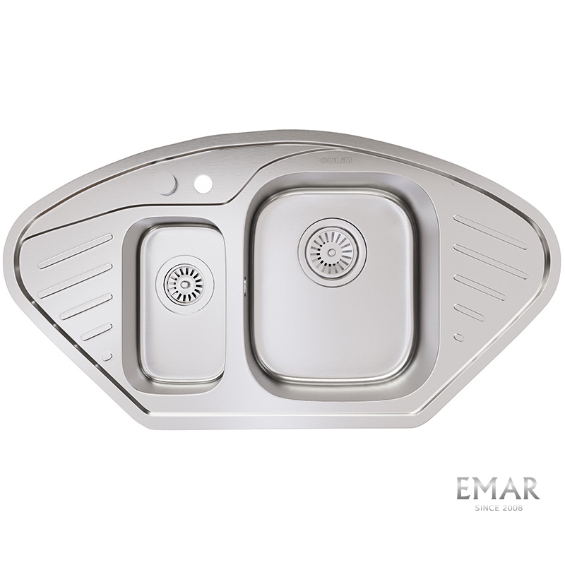 Мойка из нержавеющей стали AISI. AISI 304 содержит 18% хрома и 9% никеля, что обеспечивает максимальную устойчивость к коррозии. Шлифованная поверхность моек OULIN достигается по технологии Satin Finish Brushing. С обратной стороны, на дне чаши, находятся резиновые шумопоглащающие накладки и антиконденсатное покрытие, что делает мойку бесшумной.