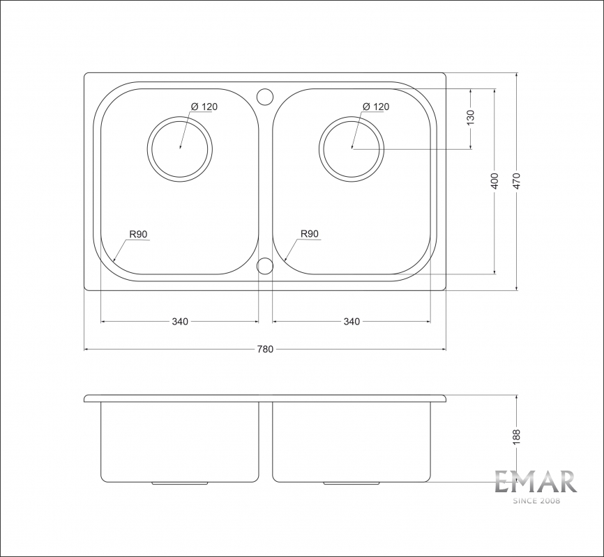 • Размеры мойки: 780 x 470 мм