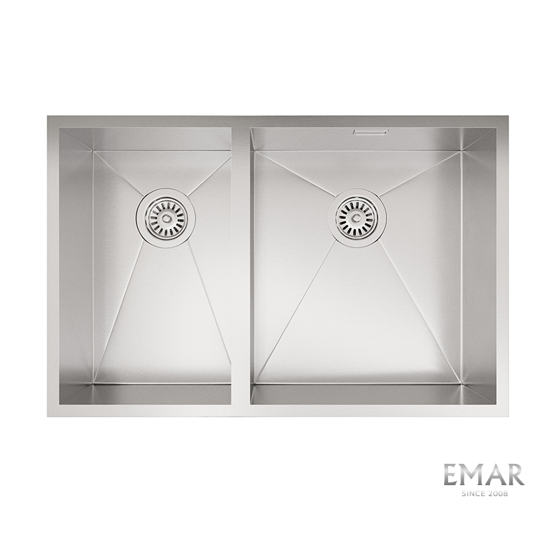 Мойка из нержавеющей стали AISI. AISI 304 содержит 18% хрома и 9% никеля, что обеспечивает максимальную устойчивость к коррозии. Шлифованная поверхность моек OULIN достигается по технологии Satin Finish Brushing. С обратной стороны, на дне чаши, находятся резиновые шумопоглащающие накладки и антиконденсатное покрытие, что делает мойку бесшумной.