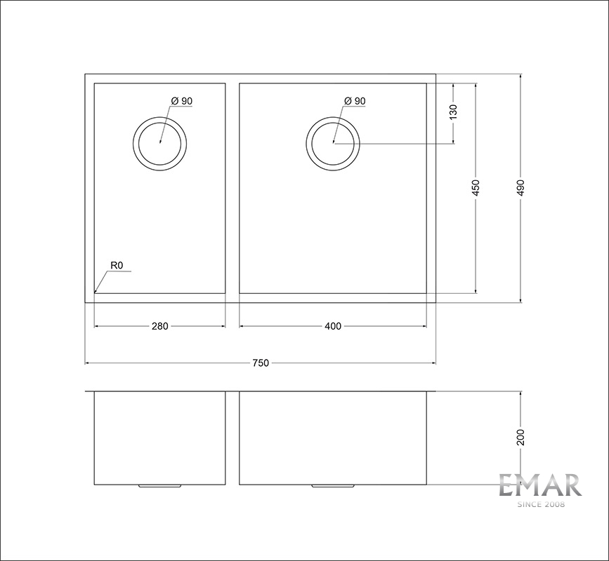 • Размеры чаш: 400 x 450 х 200 мм и 280 x 450 х 200 мм