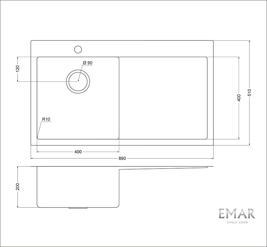 • Размеры мойки: 890 x 510 мм
