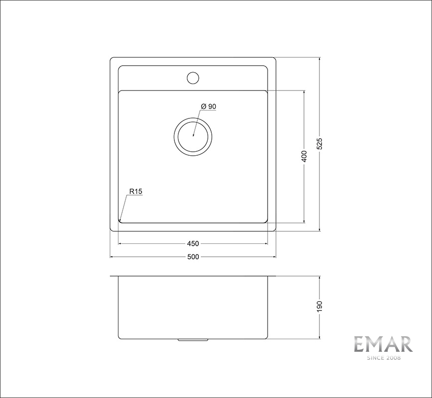 • Размеры мойки: 500 x 525 мм