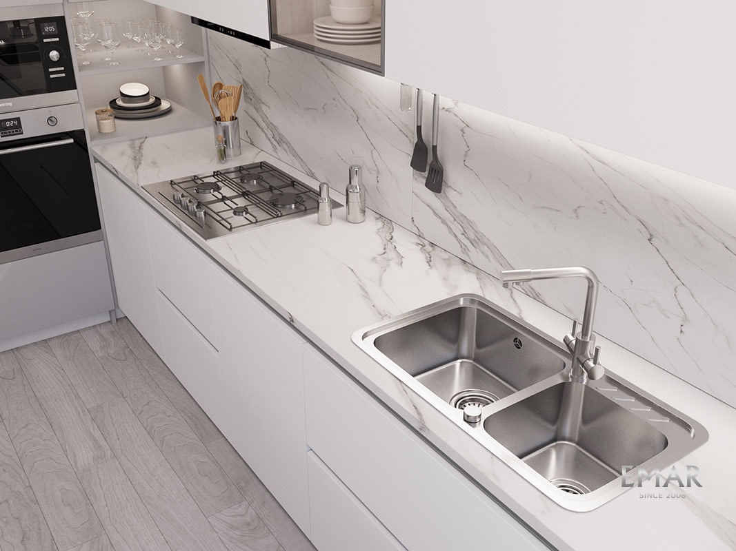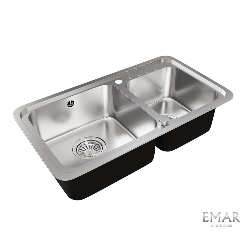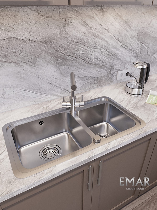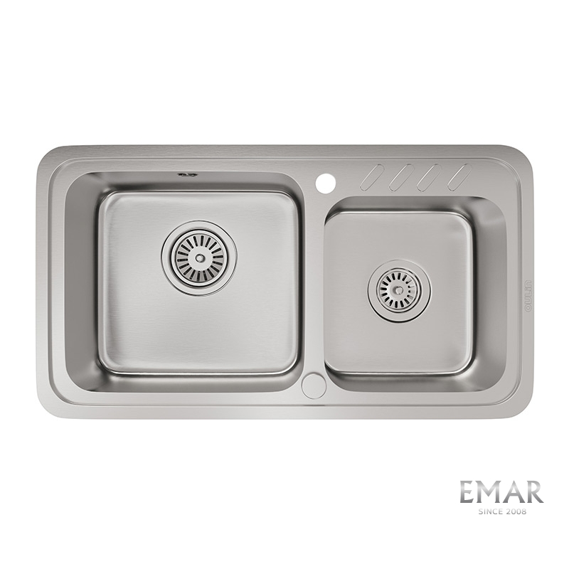 Мойка из нержавеющей стали AISI. AISI 304 содержит 18% хрома и 9% никеля, что обеспечивает максимальную устойчивость к коррозии. Шлифованная поверхность моек OULIN достигается по технологии Satin Finish Brushing. С обратной стороны, на дне чаши, находятся резиновые шумопоглащающие накладки и антиконденсатное покрытие, что делает мойку бесшумной.