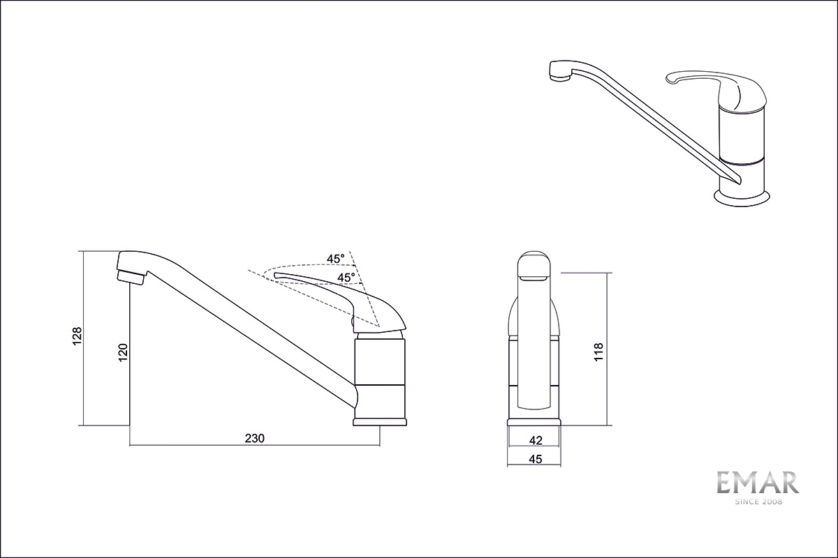 • Высота смесителя: 128 мм