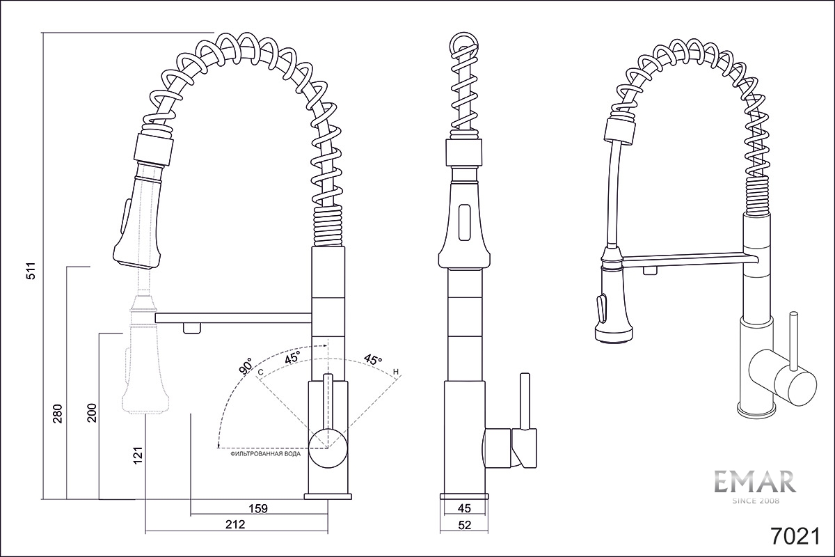 Кухонный смеситель с возможностью подключения фильтра для очистки воды. Фильтрованная вода подается через отдельную трубку и не смешивается с водопроводной водой.