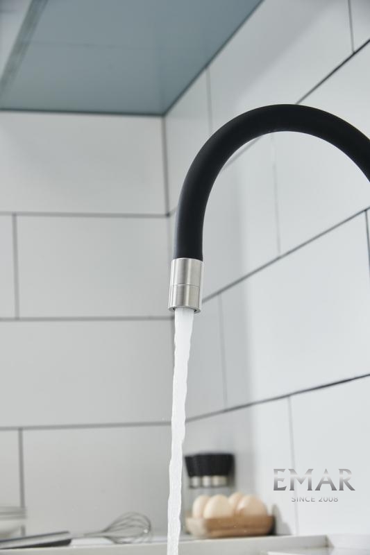 Гибкий излив позволяет регулировать направление и высоту струи. Соответствует стандартам DIN DVGW.