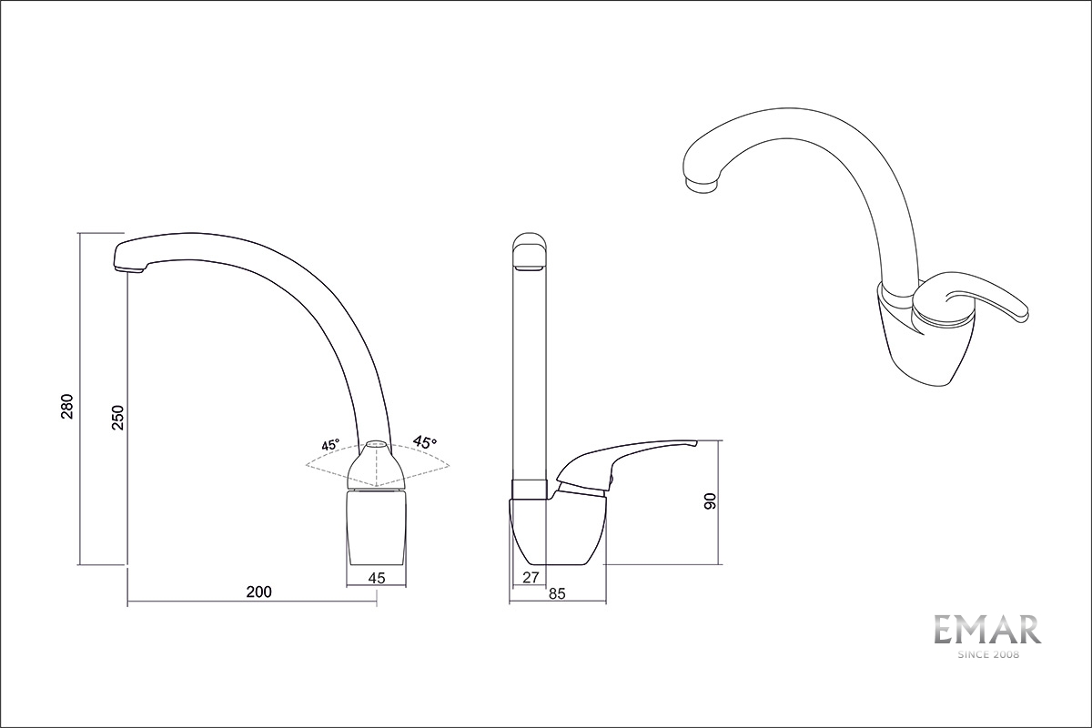 • Высота смесителя: 280мм